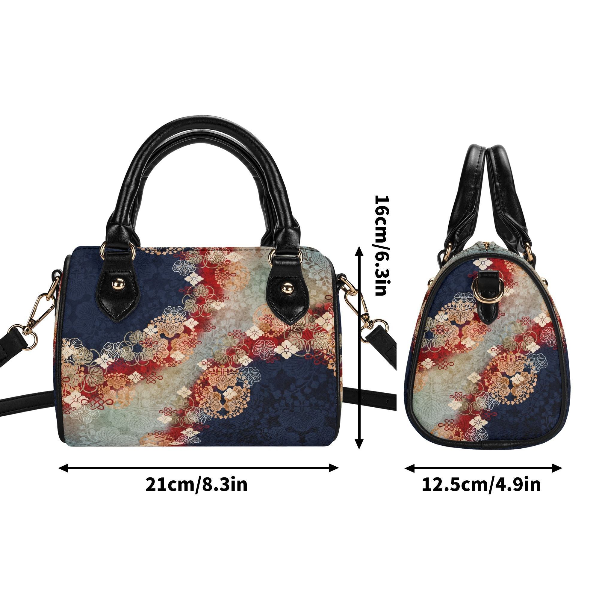 • 和紋様装飾 藍虹 ヴィーガンレザーミニボストンハンドバッグ