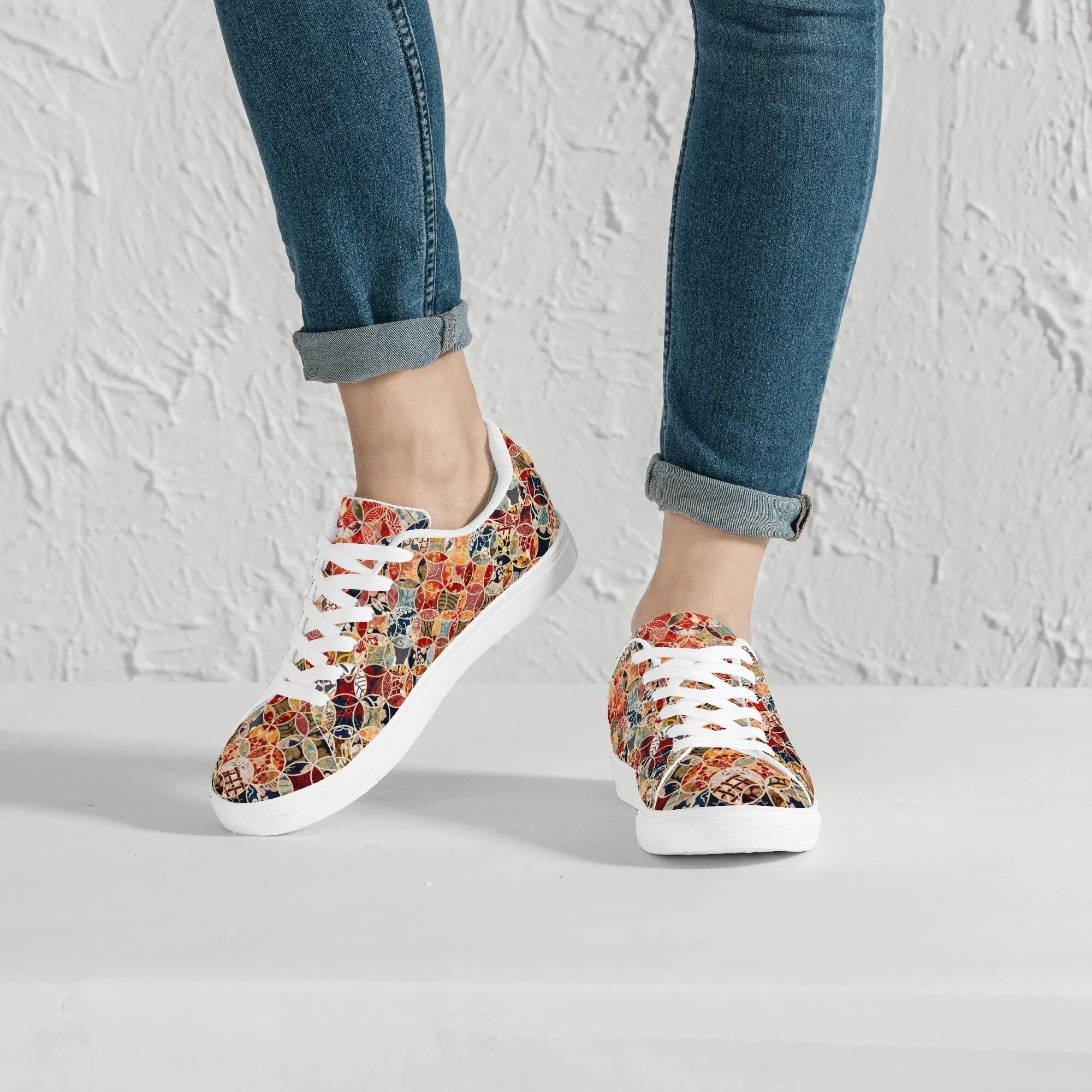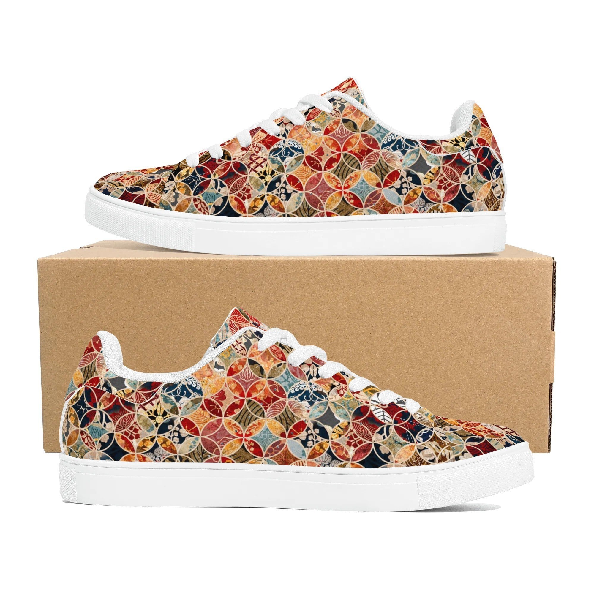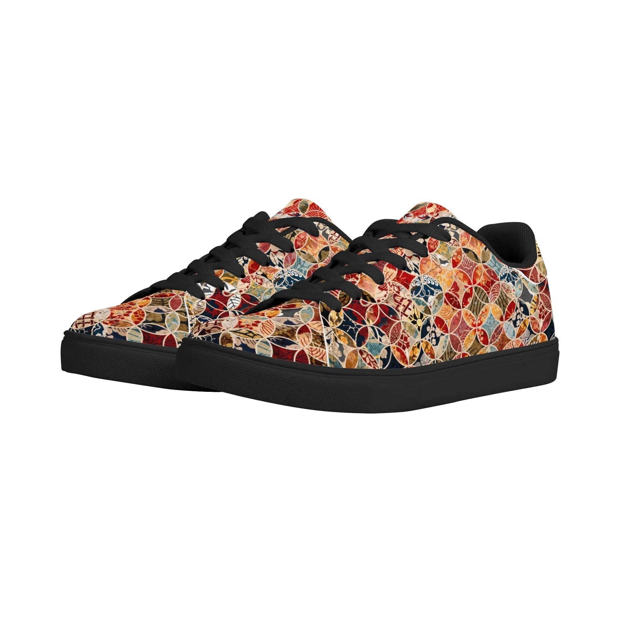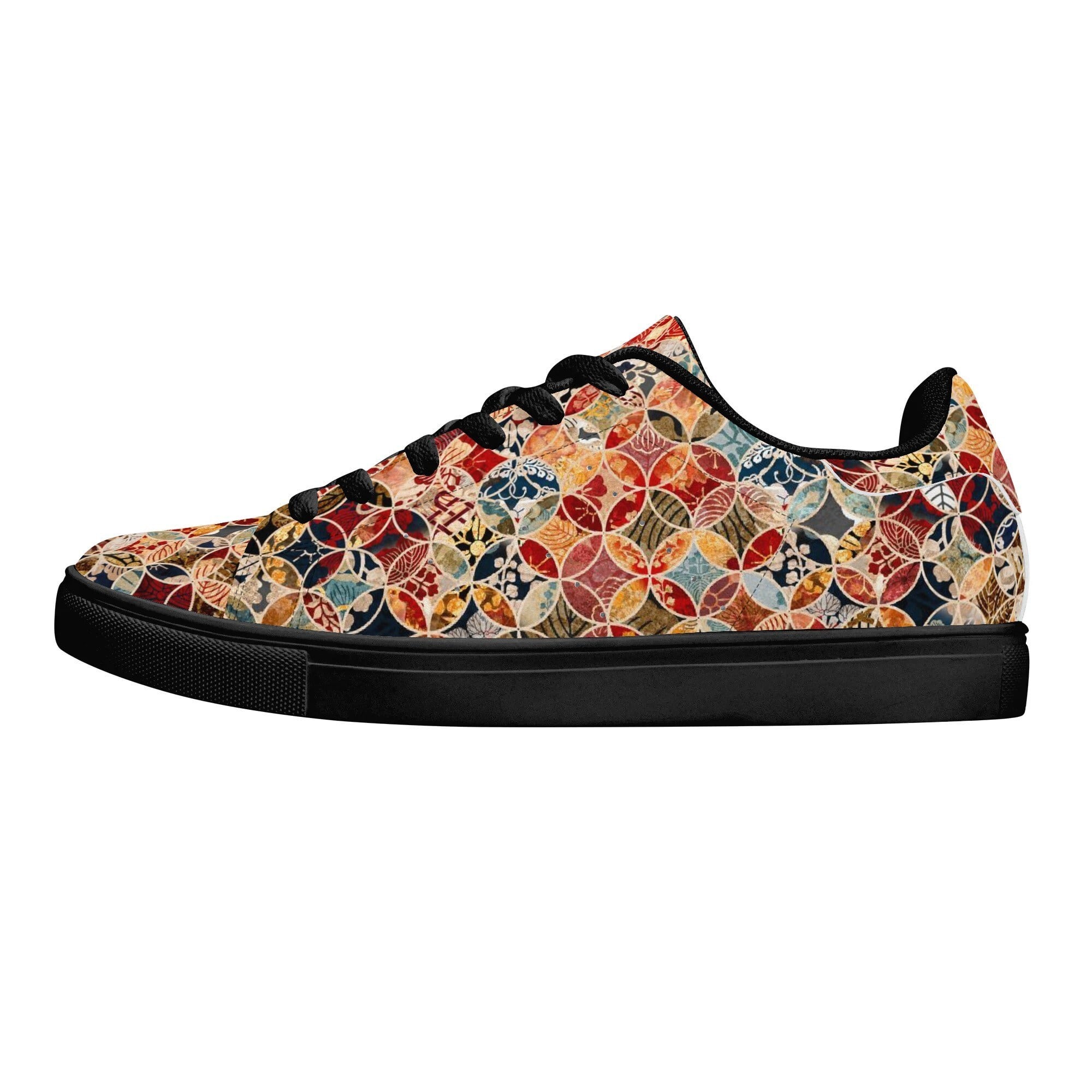 和紋様装飾 彩七宝 和柄 ヴィーガンレザー ロウトップスニーカー