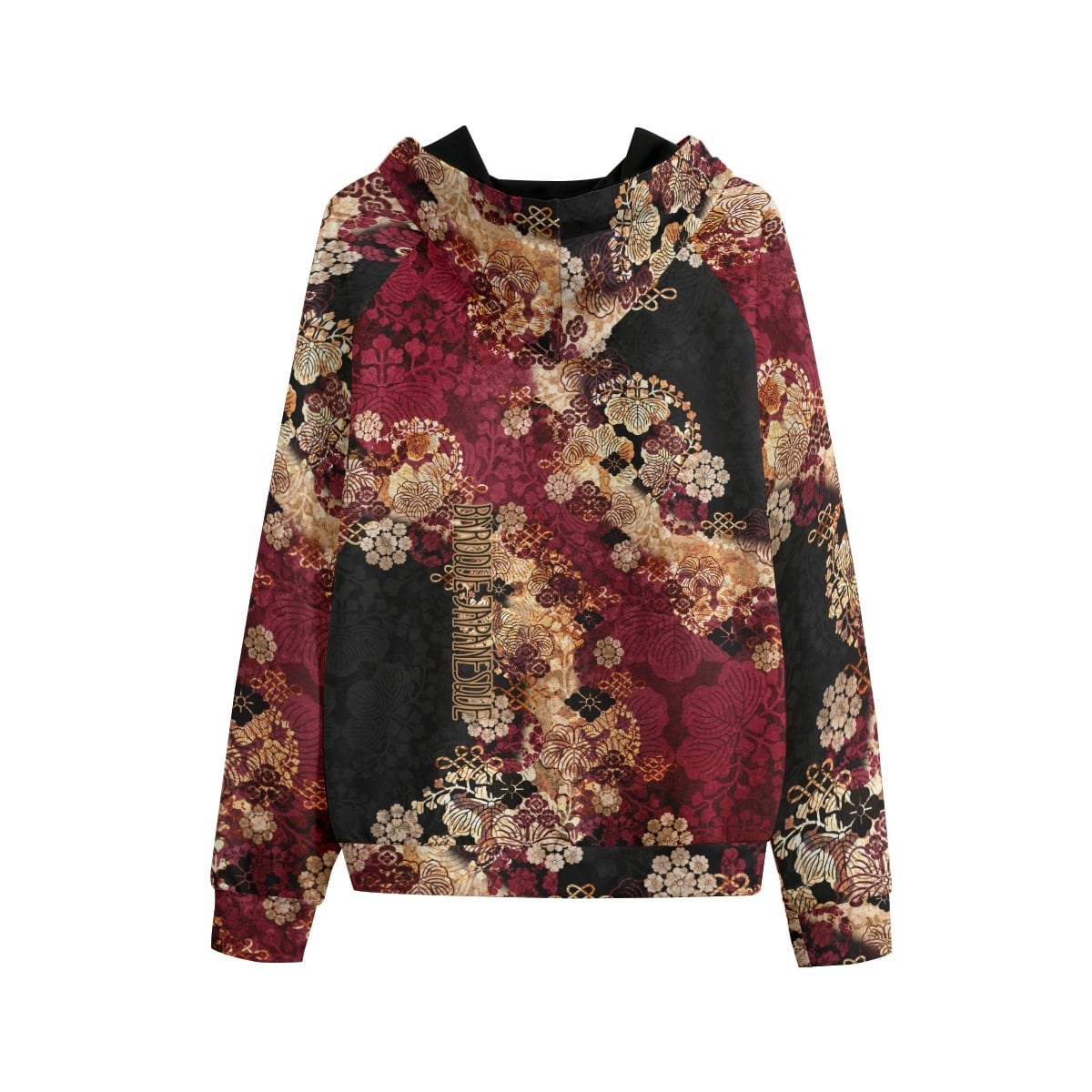 和紋様装飾 黒紅 和柄 ユニセックスパーカー ラグランスリーブ