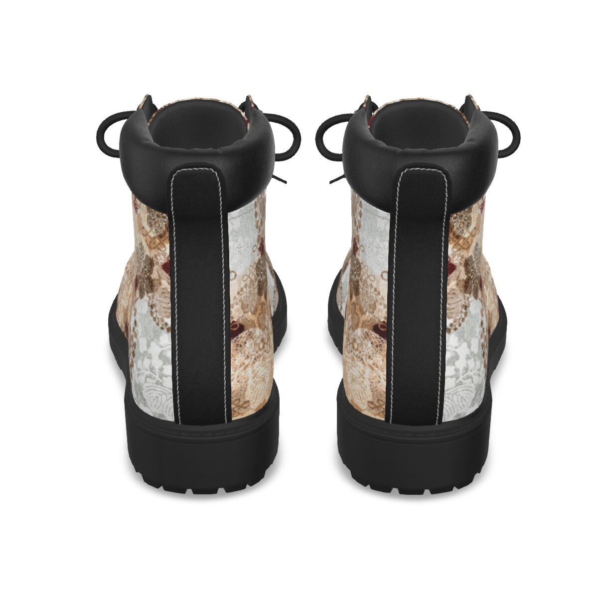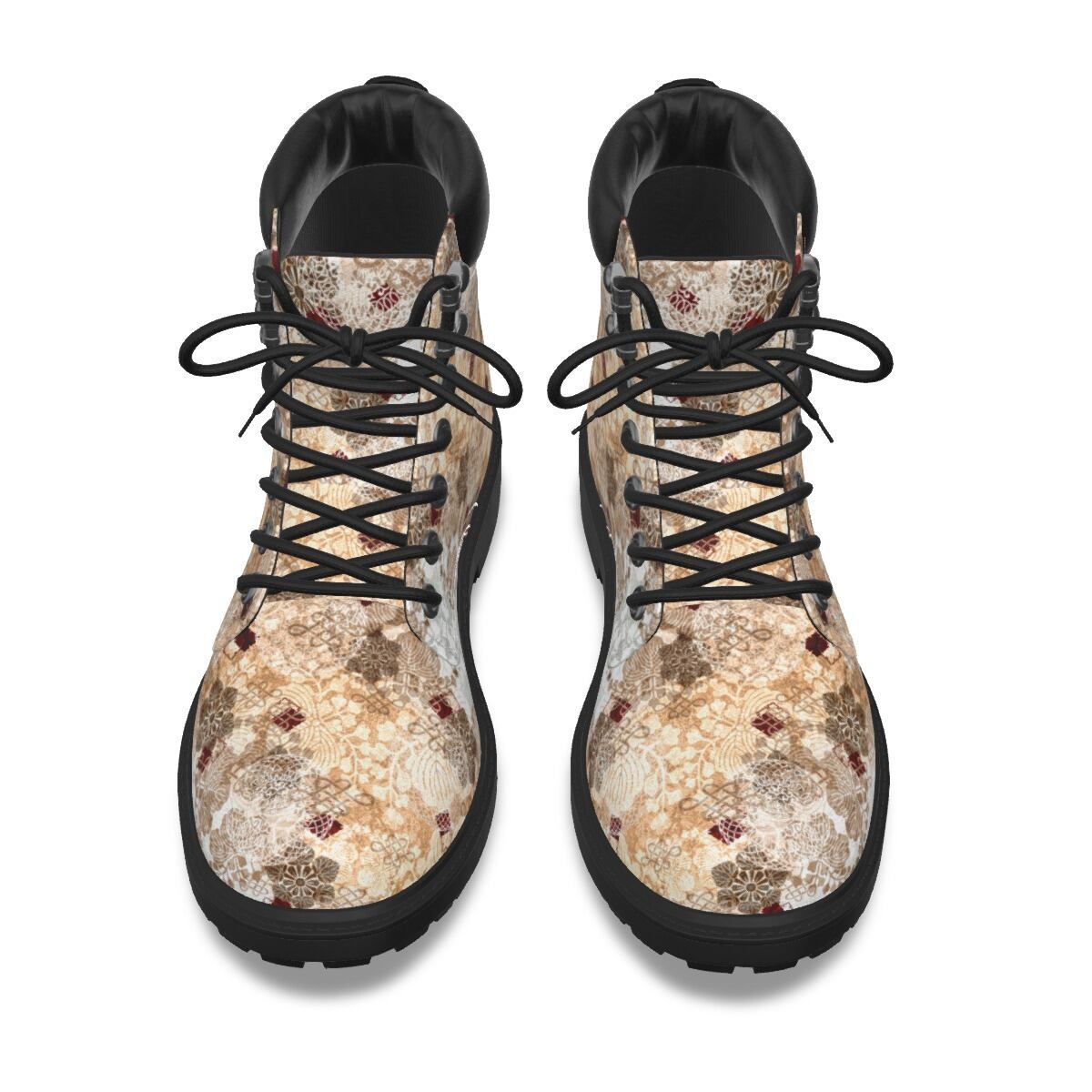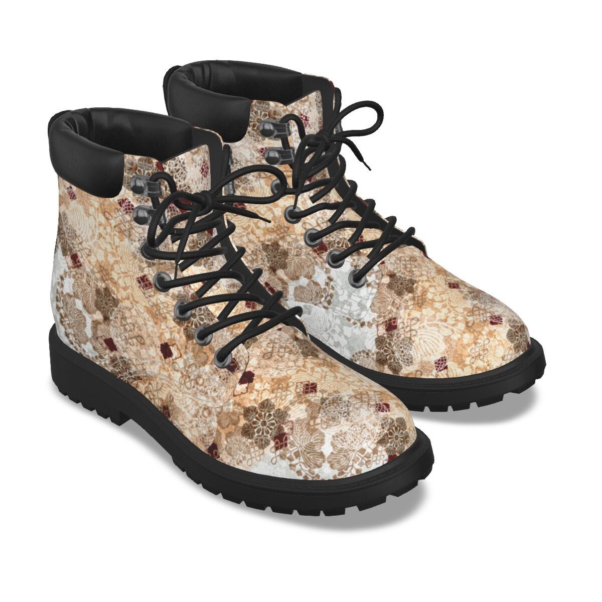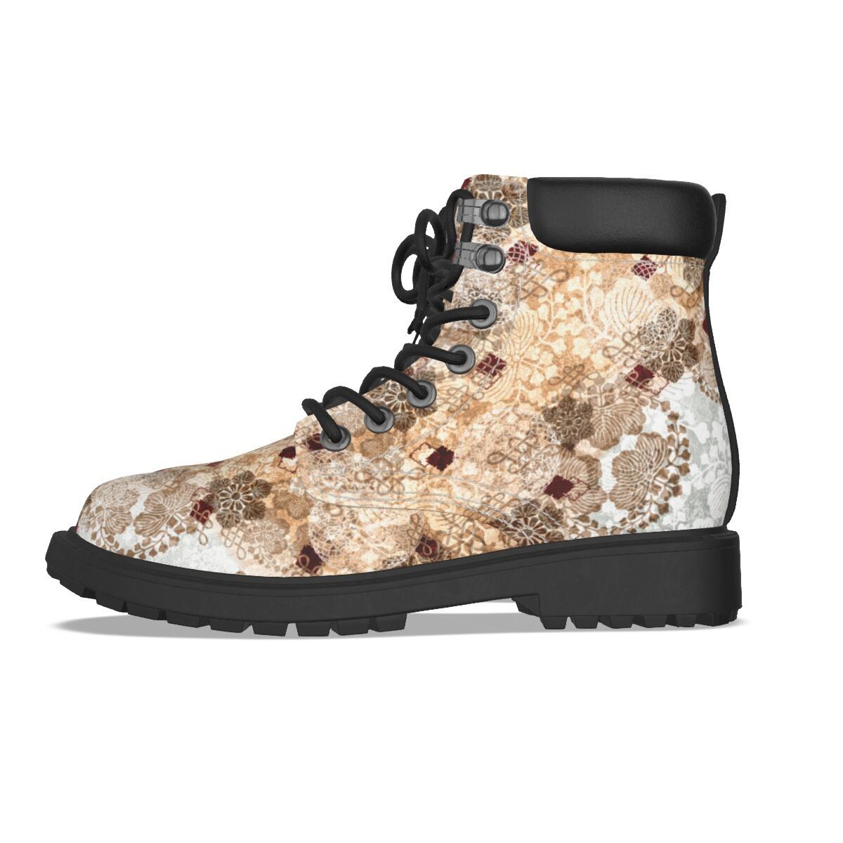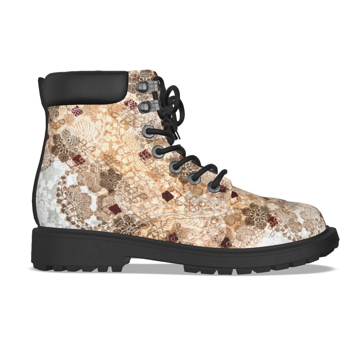 • 和紋様装飾 白金 和柄ユニセックスヴィーガンレザーブーツ