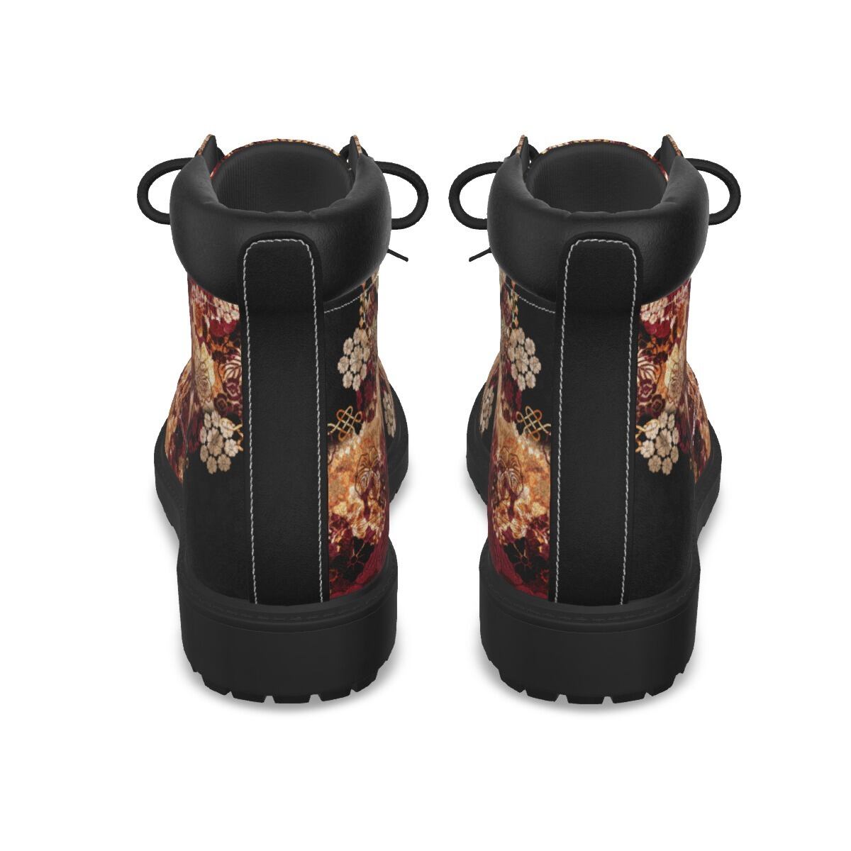 • 和紋様装飾 黒紅 和柄ユニセックスヴィーガンレザーブーツ
