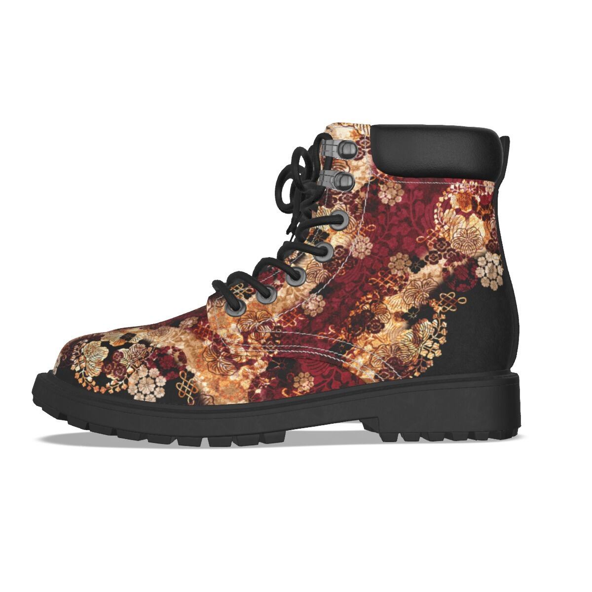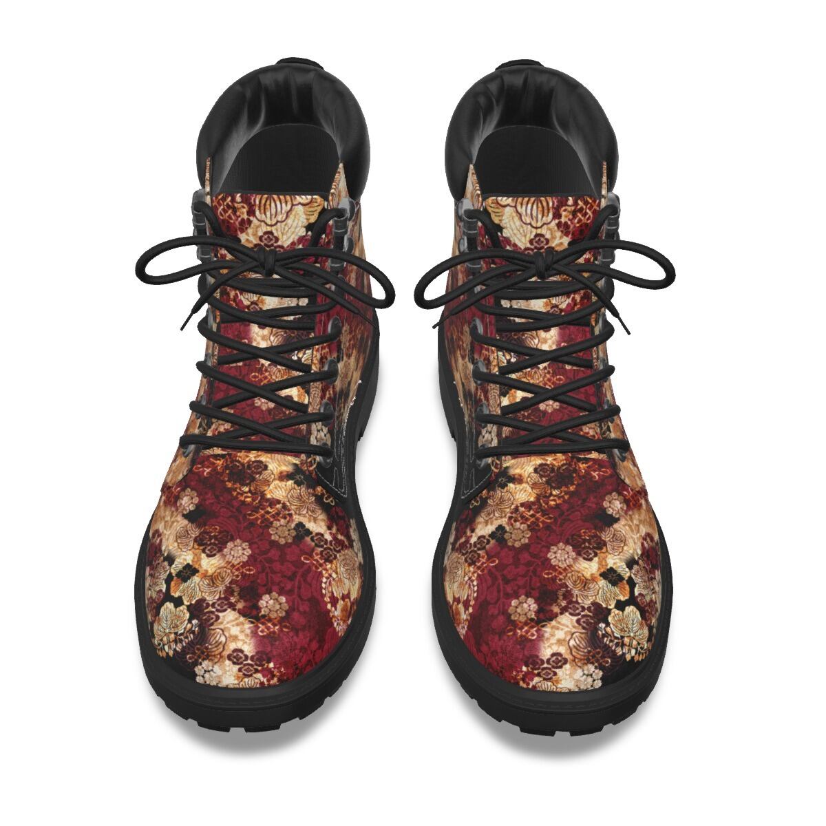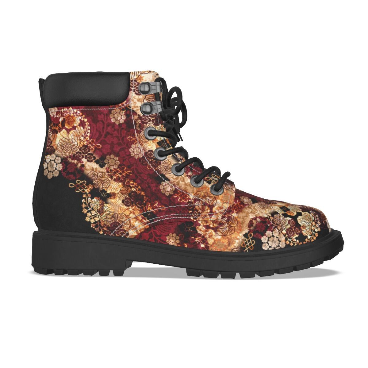 和紋様装飾 黒紅 和柄ユニセックスヴィーガンレザーブーツ