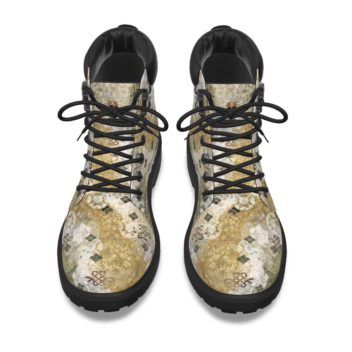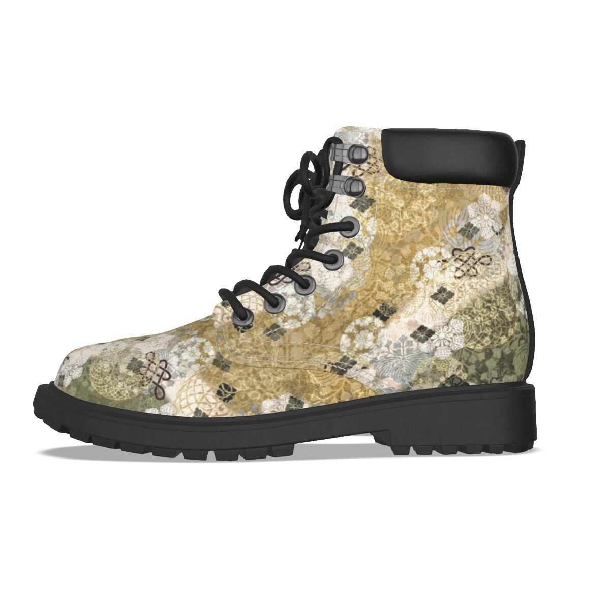 和紋様 木蘭色 和柄ユニセックスヴィーガンレザーブーツ