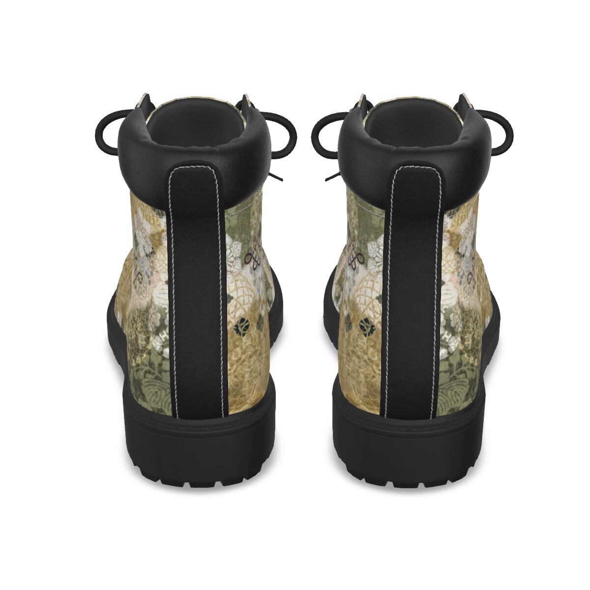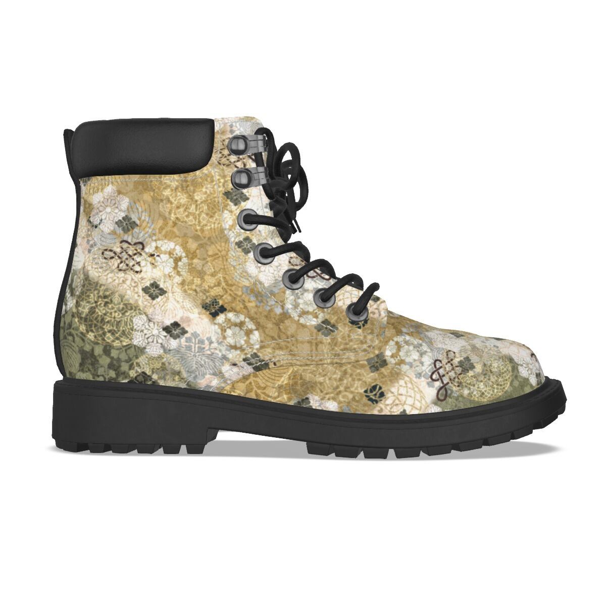 • 和紋様 木蘭色 和柄ユニセックスヴィーガンレザーブーツ