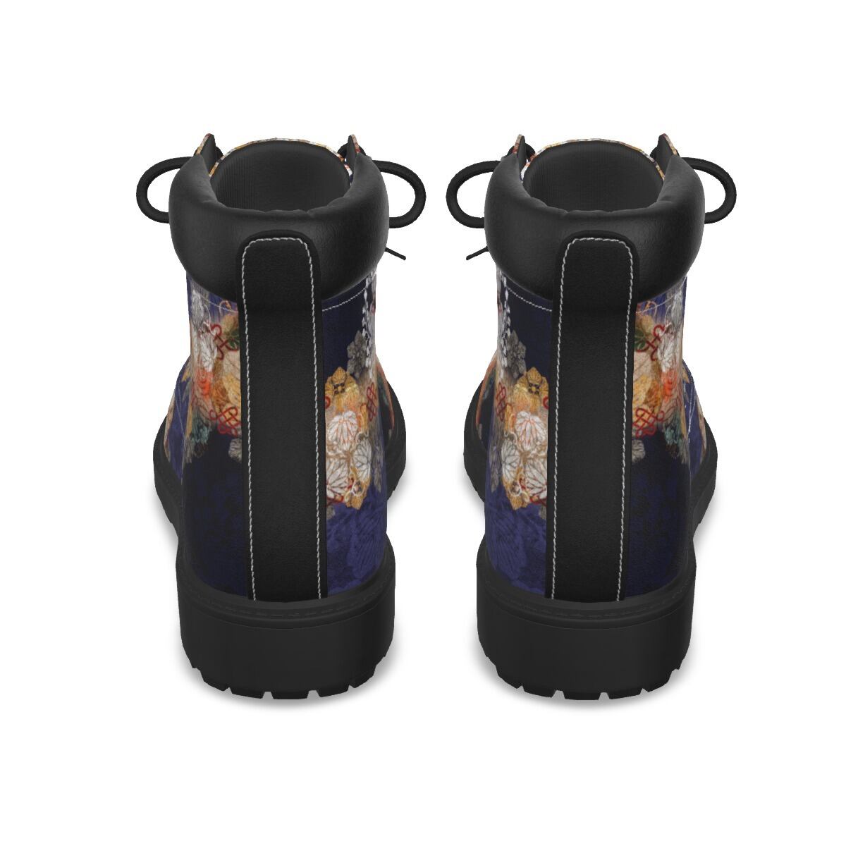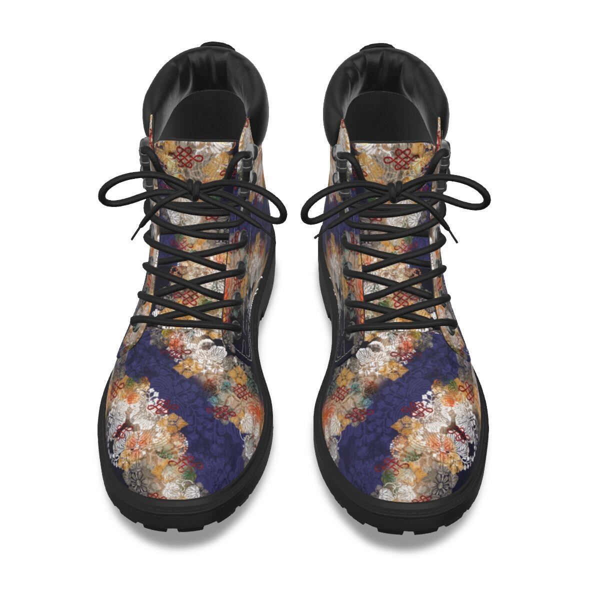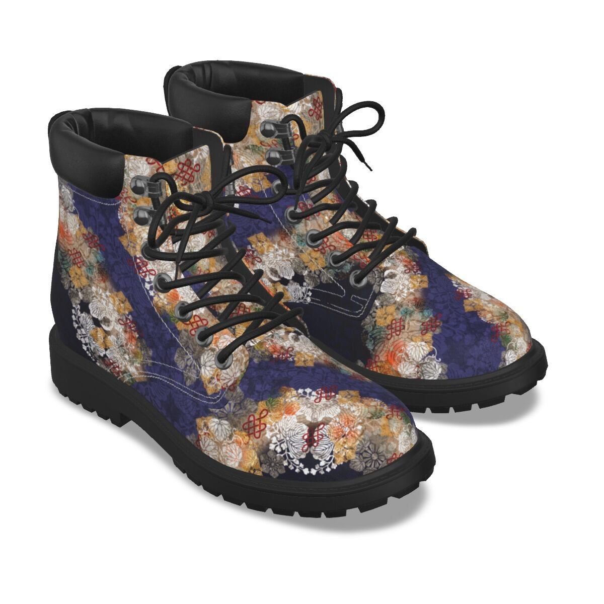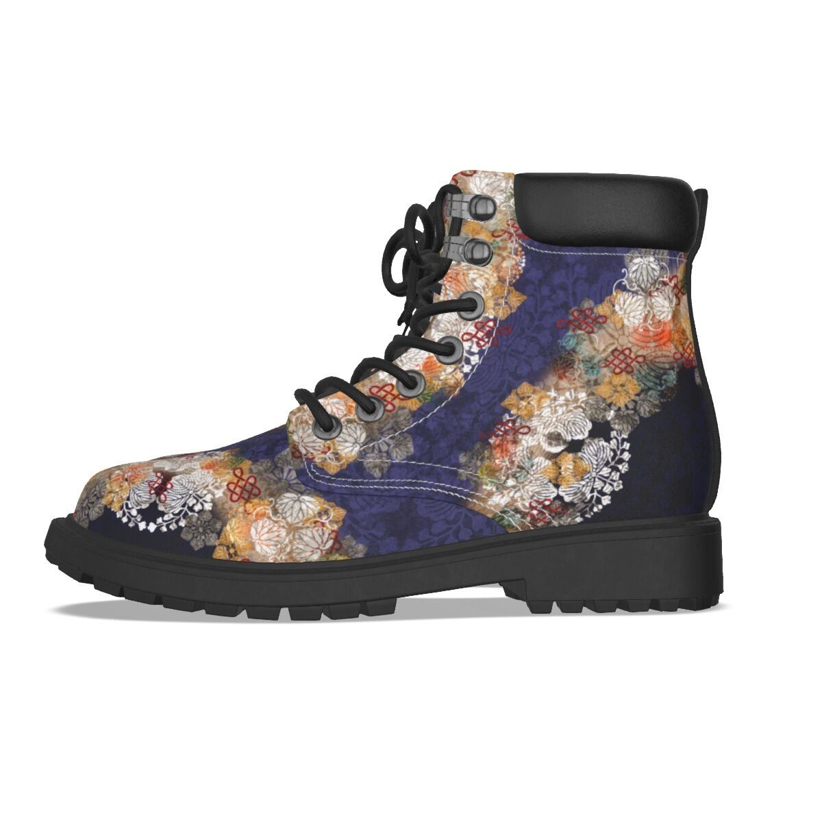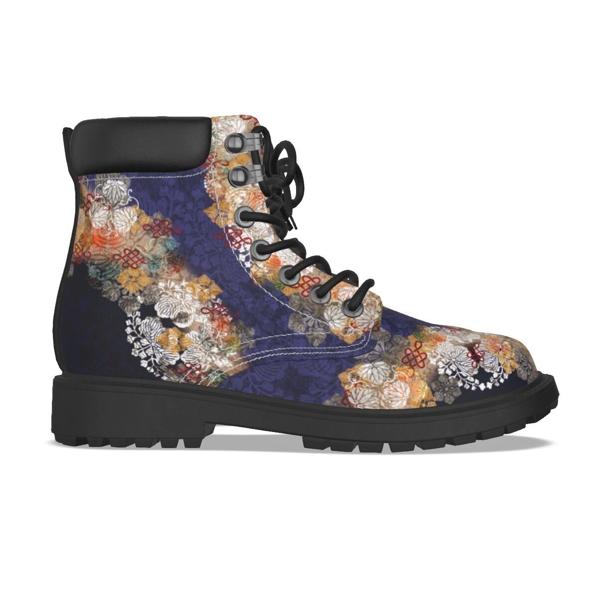 • 和紋様装飾 紫 和柄ユニセックスヴィーガンレザーブーツ