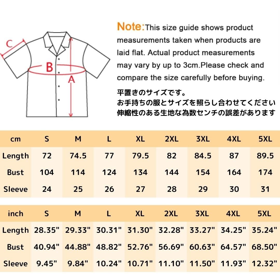 種類 S M L XL 2XL 3XL 4XL 5XL