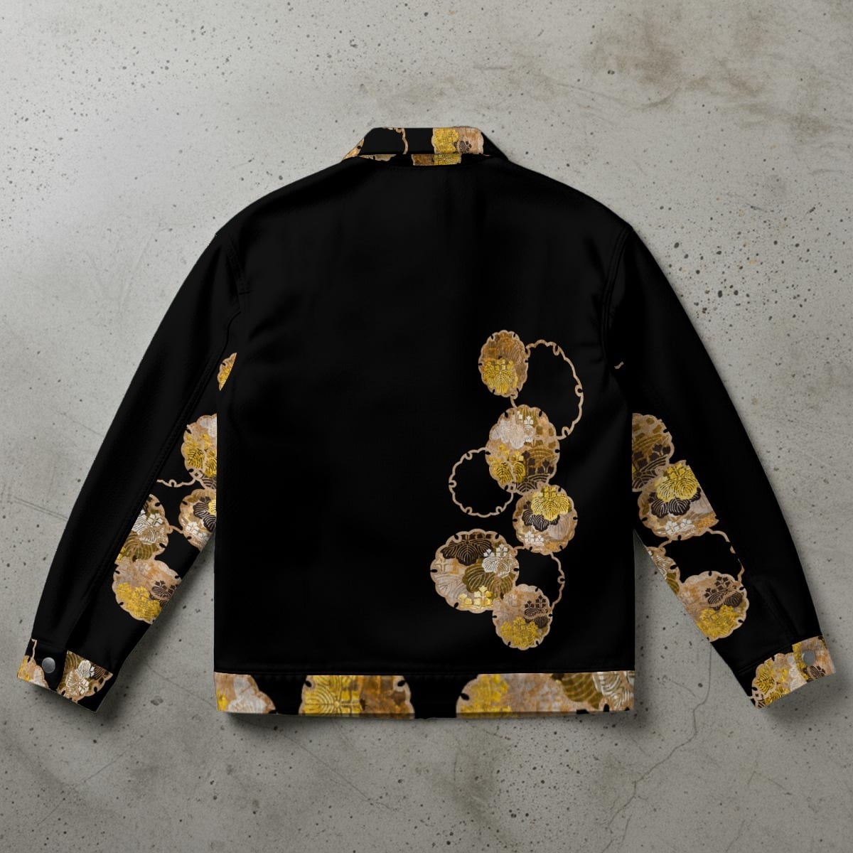 • 和紋様装飾 雪輪 和柄 コットンデニム風ジャケット