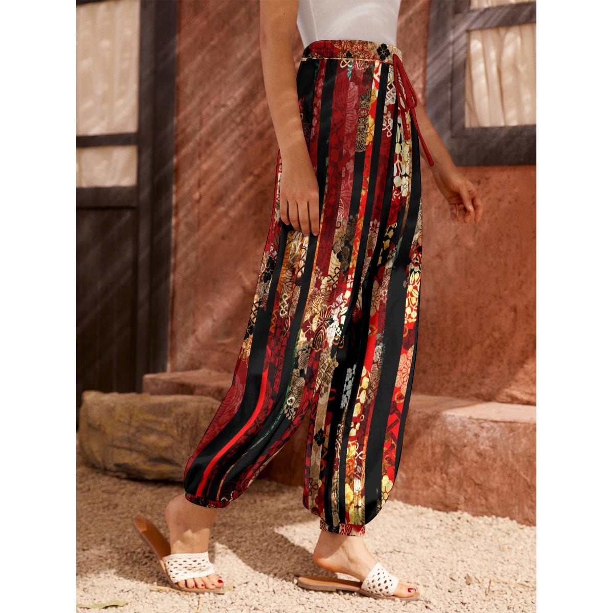 • 和柄ストライプ 赤 バルーンパンツ