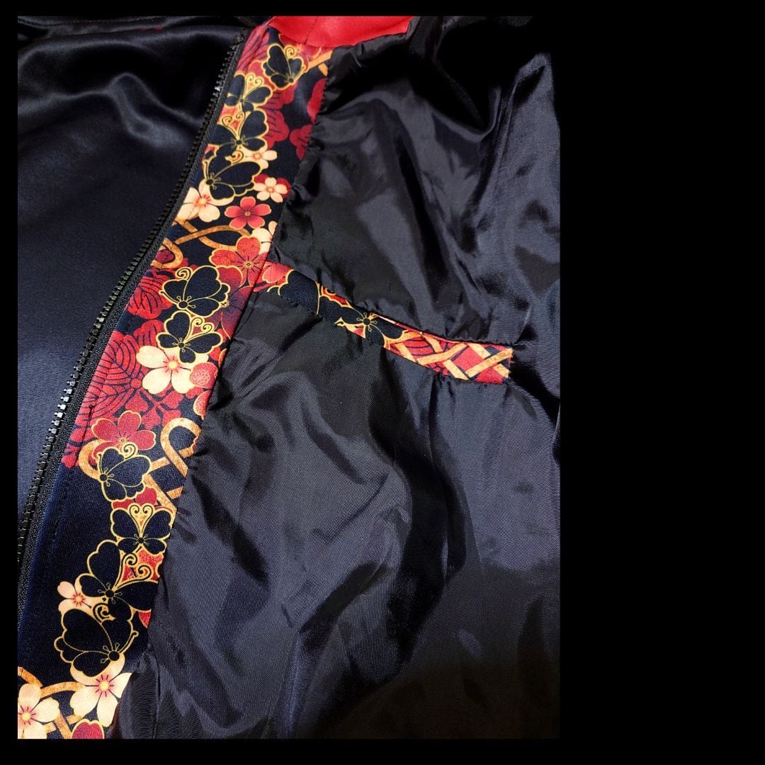 • 牡丹紋様 黒 ユニセックスジップアップパーカー 裏地付
