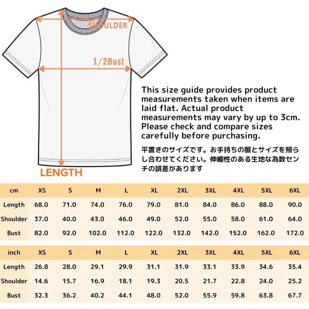 種類 XS S M L XL 2XL 3XL 4XL 5XL 6XL