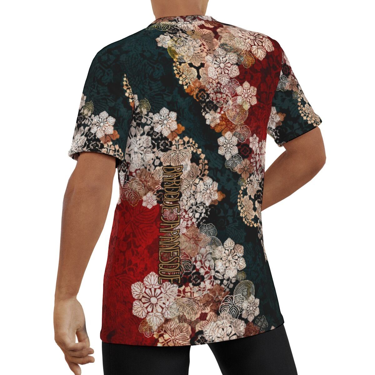 • 和紋様装飾 深緑 和柄ユニセックスTシャツ スポーツ・コットン・ベルベット素材