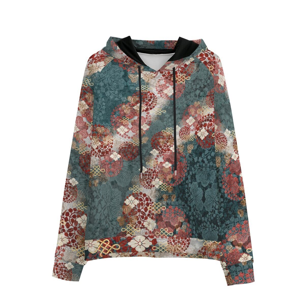 • 和紋様装飾 御召茶 和柄 ユニセックスパーカー ラグランスリーブ